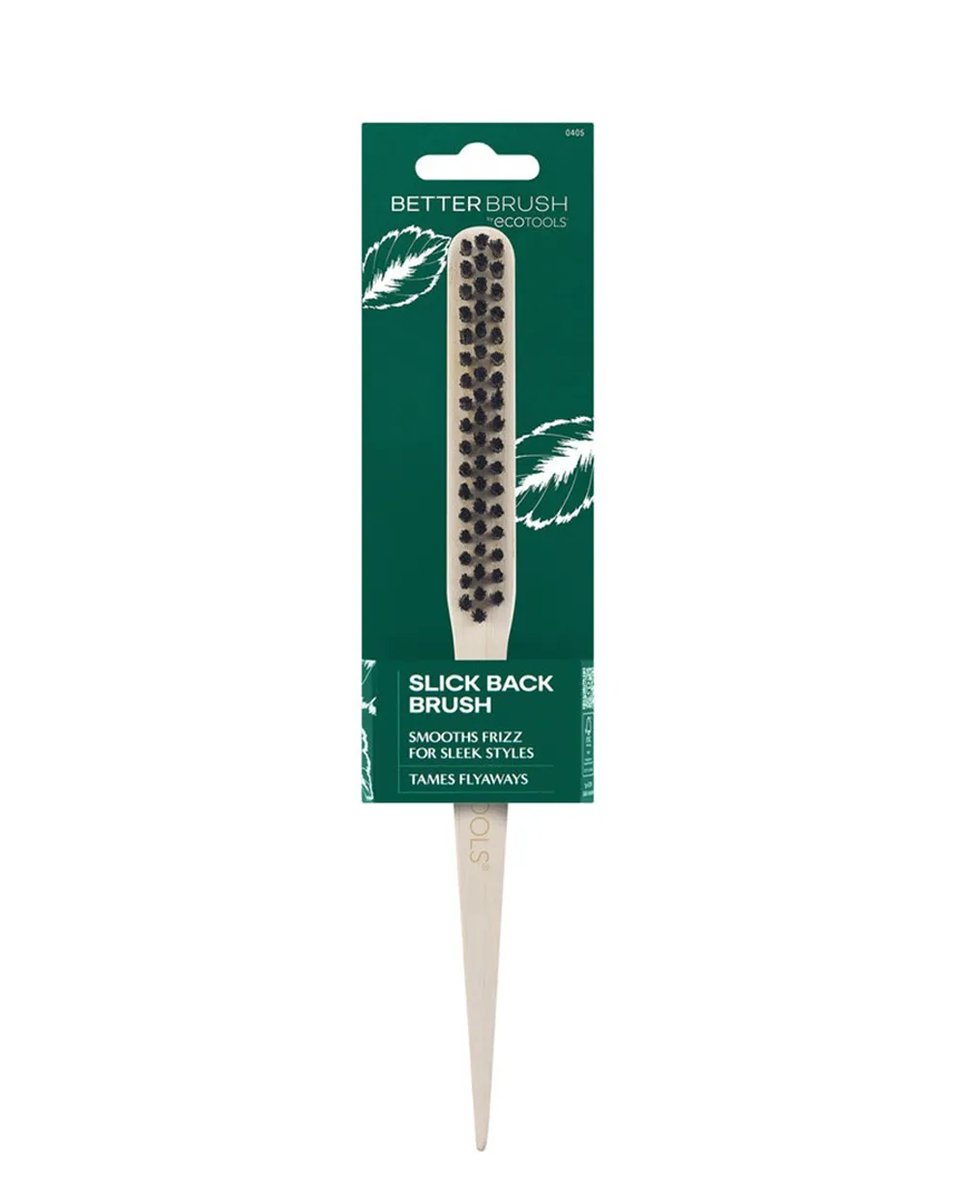 EcoTools Slick Back Brush es nuestro cepillo ecológico para el moño perfecto para la espalda resbaladiza. Logra un estilo elegante rápido y fácil con cualquier tipo de cabello, incluyendo: cabello liso, cabello ondulado, cabello rizado y cabello rizado