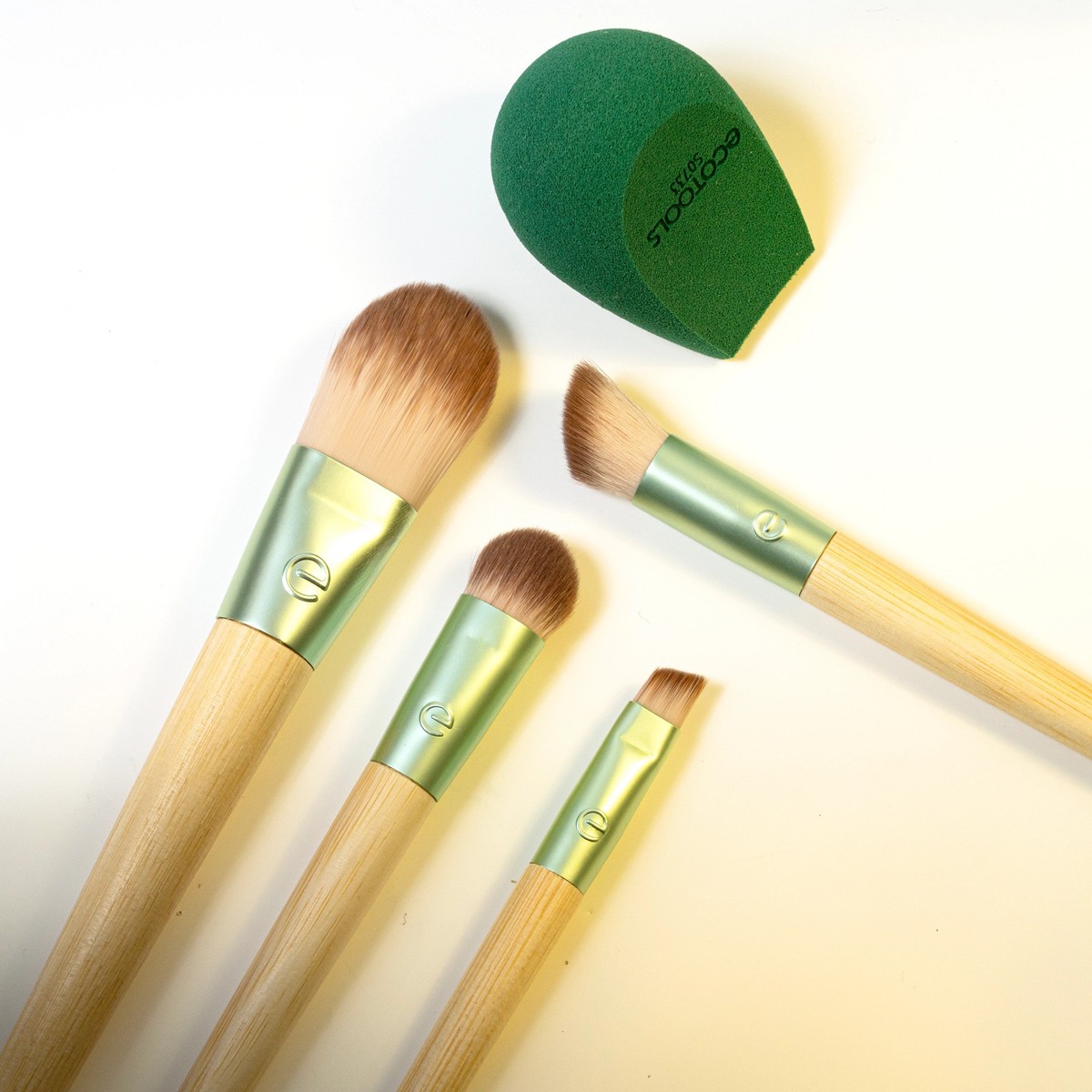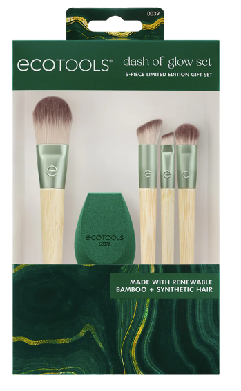 El juego de esponjas y brochas de maquillaje Dash of Glow de EcoTools te ofrece 5 herramientas ecológicas para ayudarte a lograr un aspecto natural de principio a fin. El kit de brochas de maquillaje incluye la brocha para base clásica, la brocha correctora micro difusora, la brocha para sombra completa, la brocha para delineador en ángulo y la esponja perfeccionadora fresca. Estas cuatro brochas de maquillaje y una esponja para mezclar maquillaje son perfectas para los días con poco maquillaje.