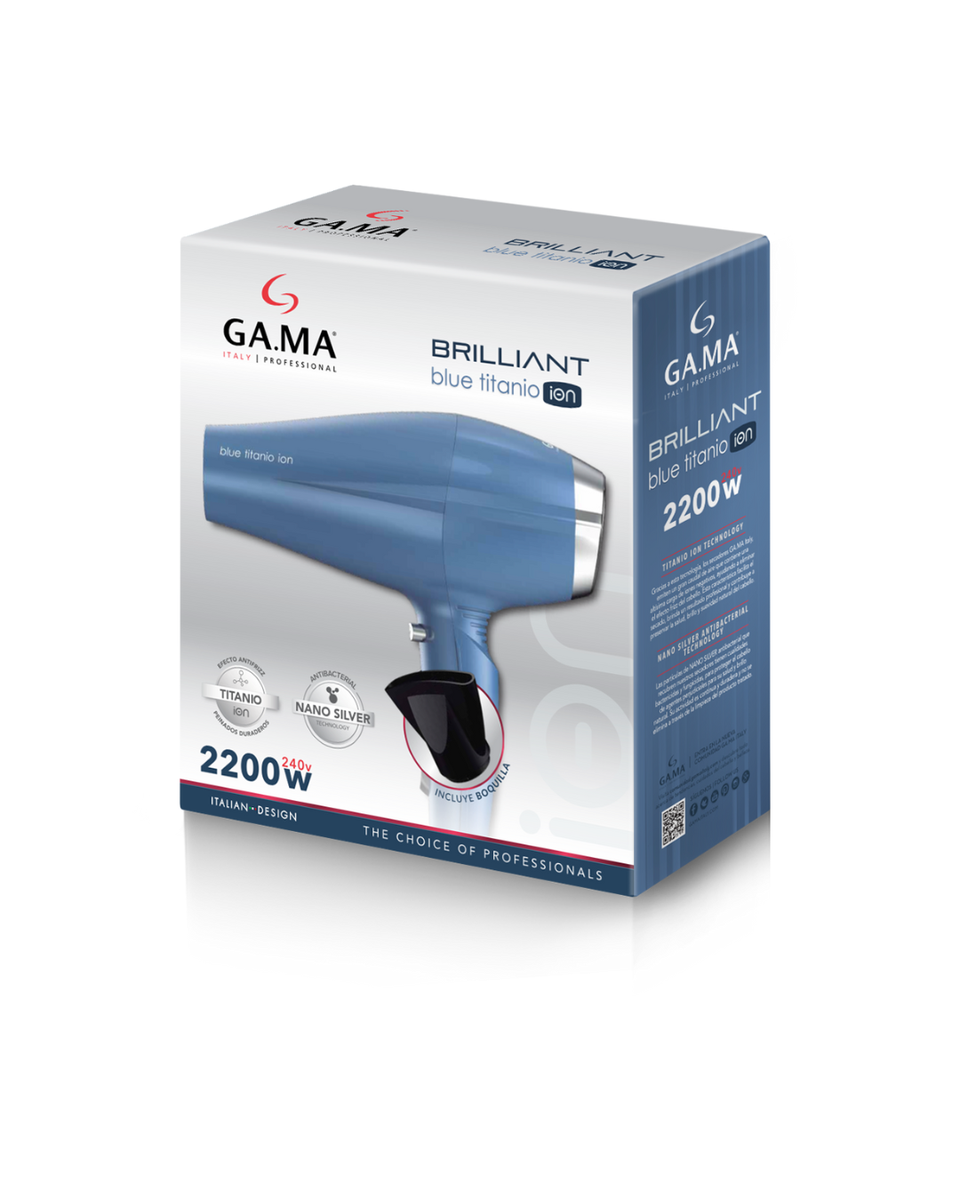 La secadora GA.MA Blue Titanio 3D Therapy Anti-Frizz es un secador de pelo profesional con un potente motor AC de 2300W y tecnología iónica para un cabello brillante y sin encrespamiento