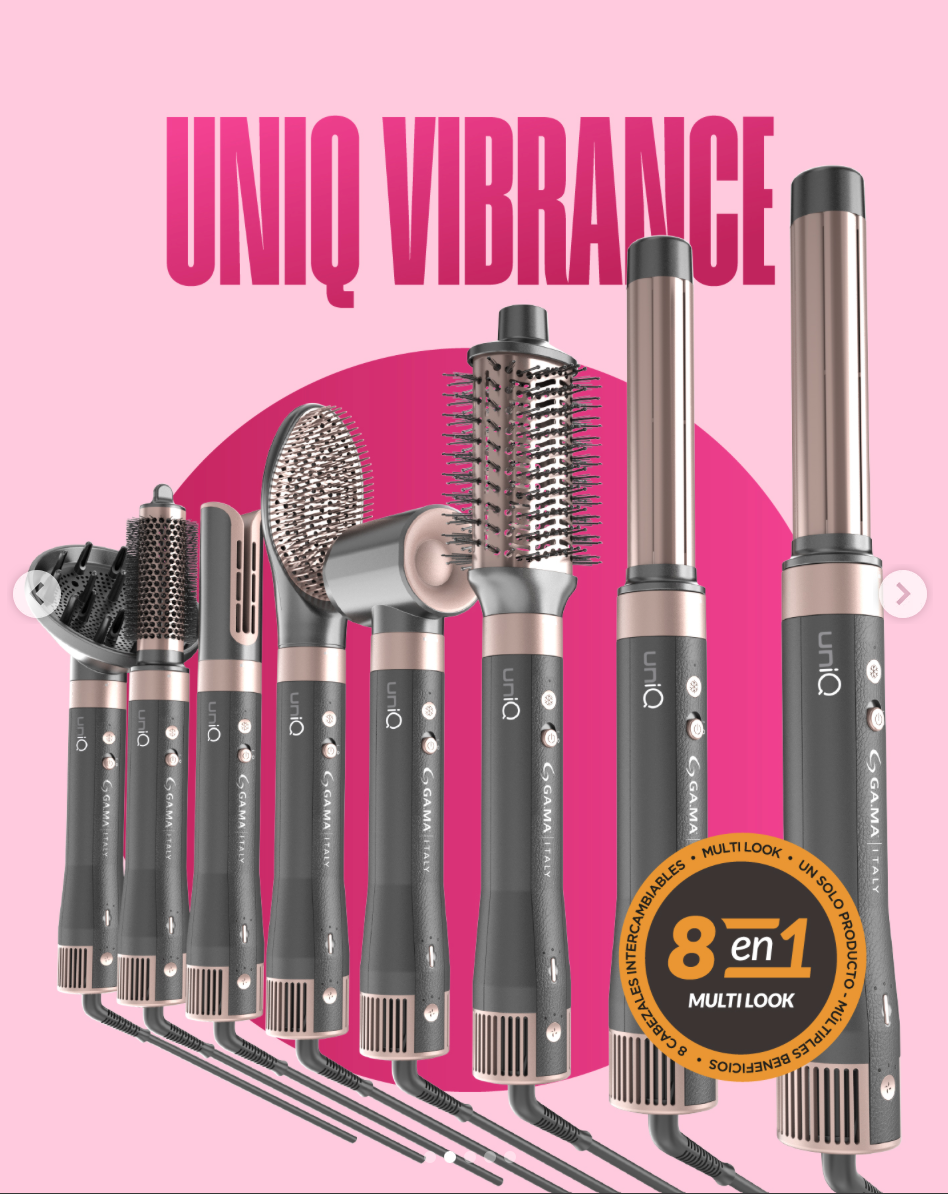 El Multi Styler UniQ VIBRANCE 8 en 1 es una herramienta versátil que combina secador, rizador y cepillo en un solo dispositivo, permitiéndote secar, modelar, alisar, rizar, ondular, suavizar, dar volumen y definir con resultados profesionales en casa. Su innovadora tecnología Efecto Coanda a la tecnología tourmalina reduce el frizz yIncorpora un motor digital Brushless de 100.000 rpm, 3 velocidades, 4 niveles de temperatura y función Cool Shot, garantizando potencia y control en cada uso.