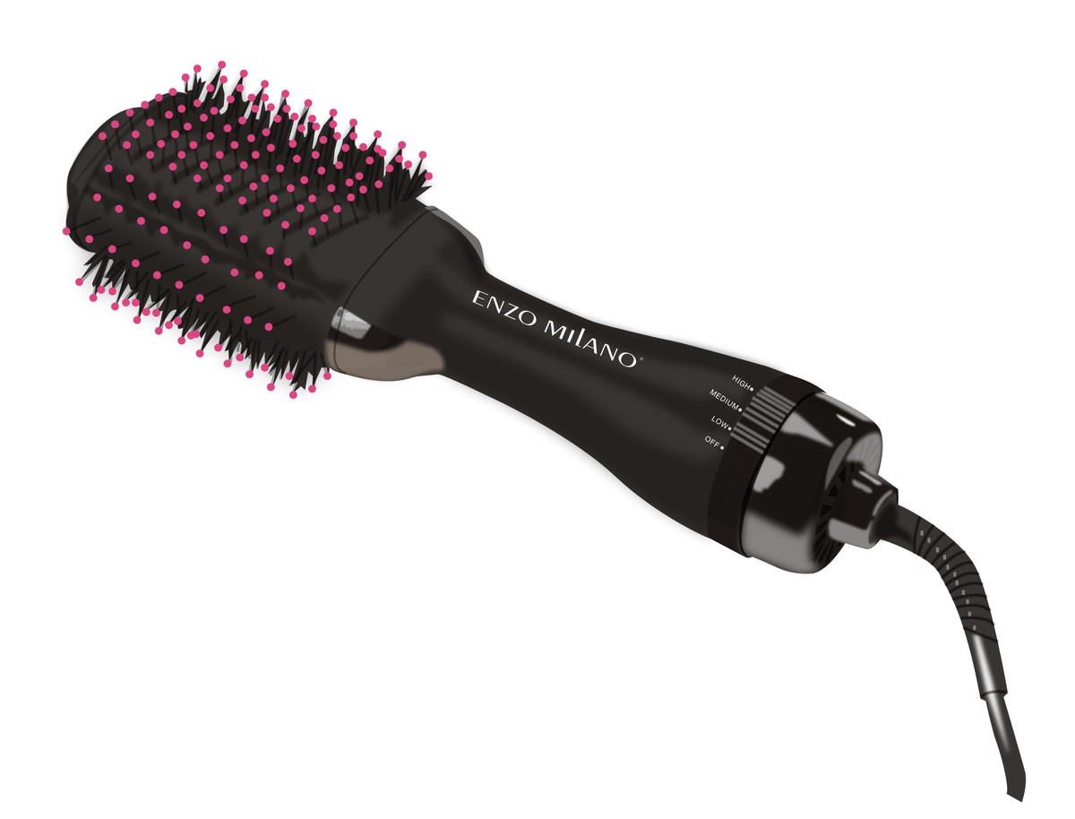 Recubierto con TITANIUM-TURMALINA-CERÁMICA Cerdas suaves para no provocar frizz Generador de iones 1 año de garantía Forma ovalada para un mejor contacto entre el cabello y la superficie. Flujo de aire uniforme de 360 grados. Tecnología ENZOION para reducir los daños en el cabello. Tres configuraciones de calor.