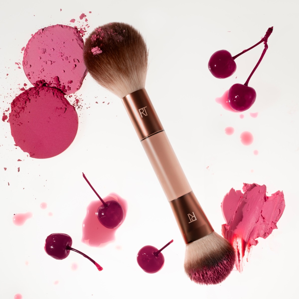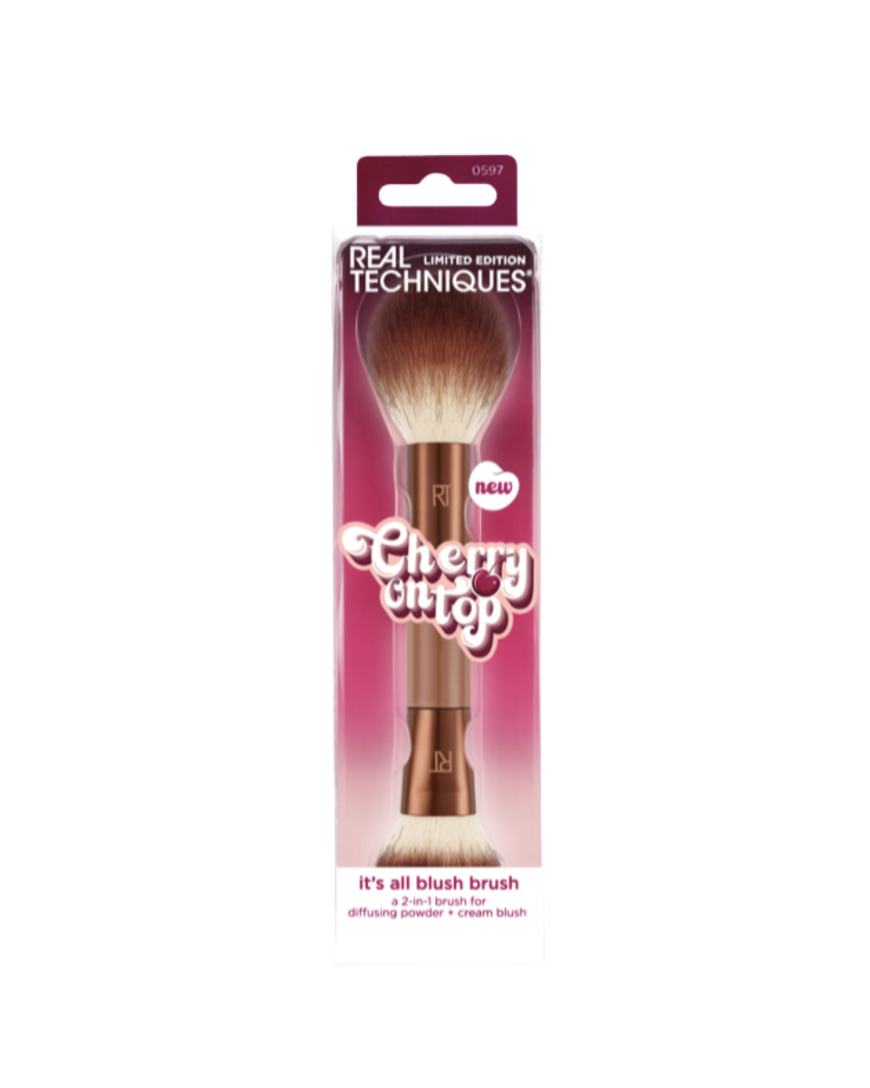 Real Techniques It's All Blush Brush incluye: (1) cepillo cónico RT 104 para mejillas y (1) cepillo para rubor RT 105, todo lo que necesitas en un cepillo de maquillaje de doble punta para una aplicación impecable de rubor