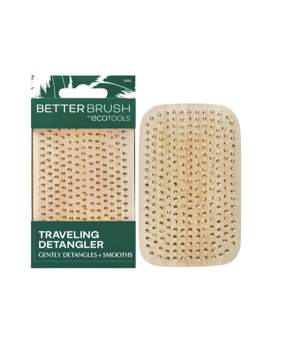 EcoTools Travel Detangler es nuestro cepillo ecológico que ayuda a desenredar suavemente el cabello húmedo o seco sobre la marcha. El mini cepillo compacto funciona en todo tipo de cabello, incluyendo: cabello liso, ondulado, rizado y cabello rizado